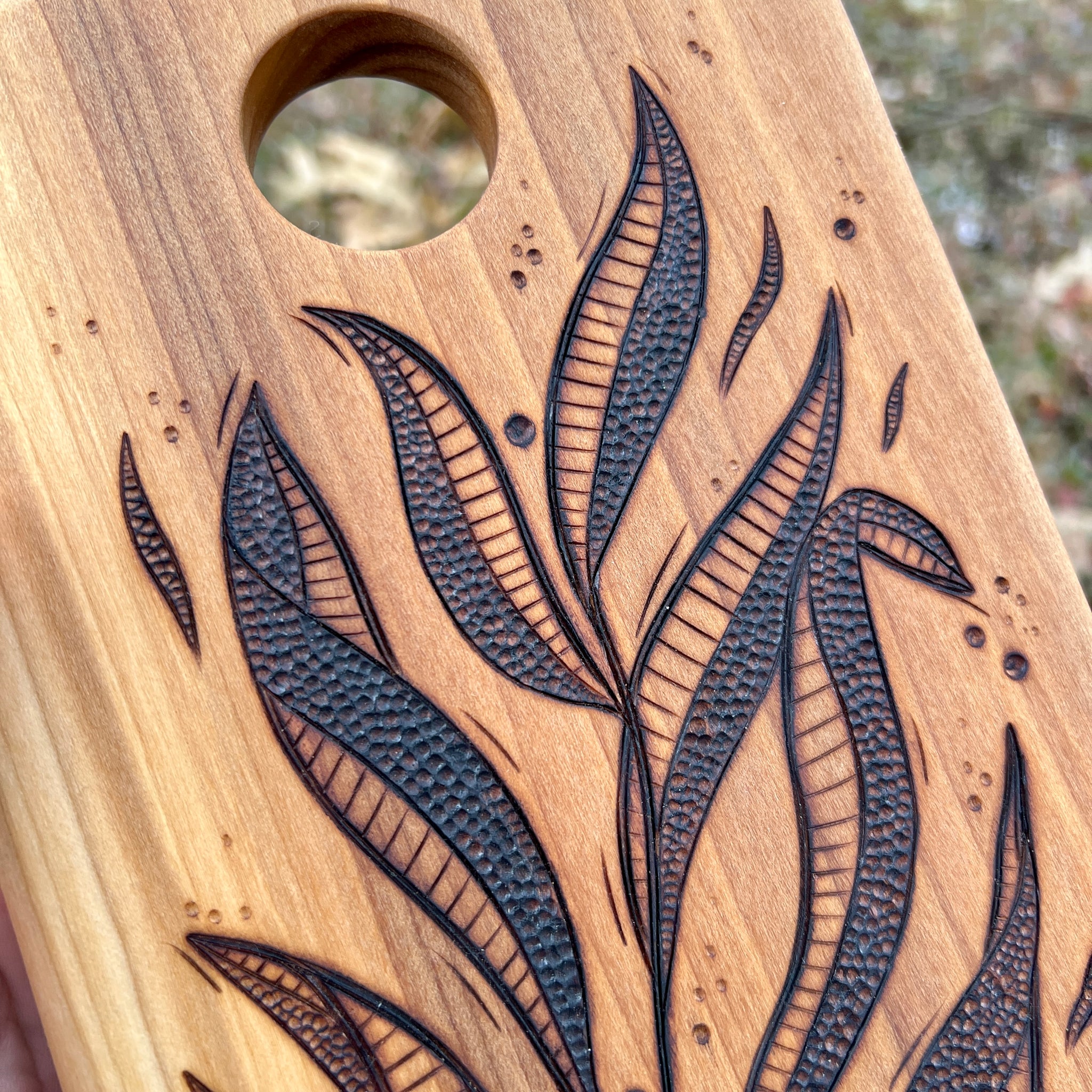 Our cutting boards are hand-burned with detailed pyrography, turning beautiful hardwood into functional art. Designed to be used, admired, and gifted, every board is a unique blend of craftsmanship and creativity. Some choose to preserve the art on the front of the board by cutting on the backside.